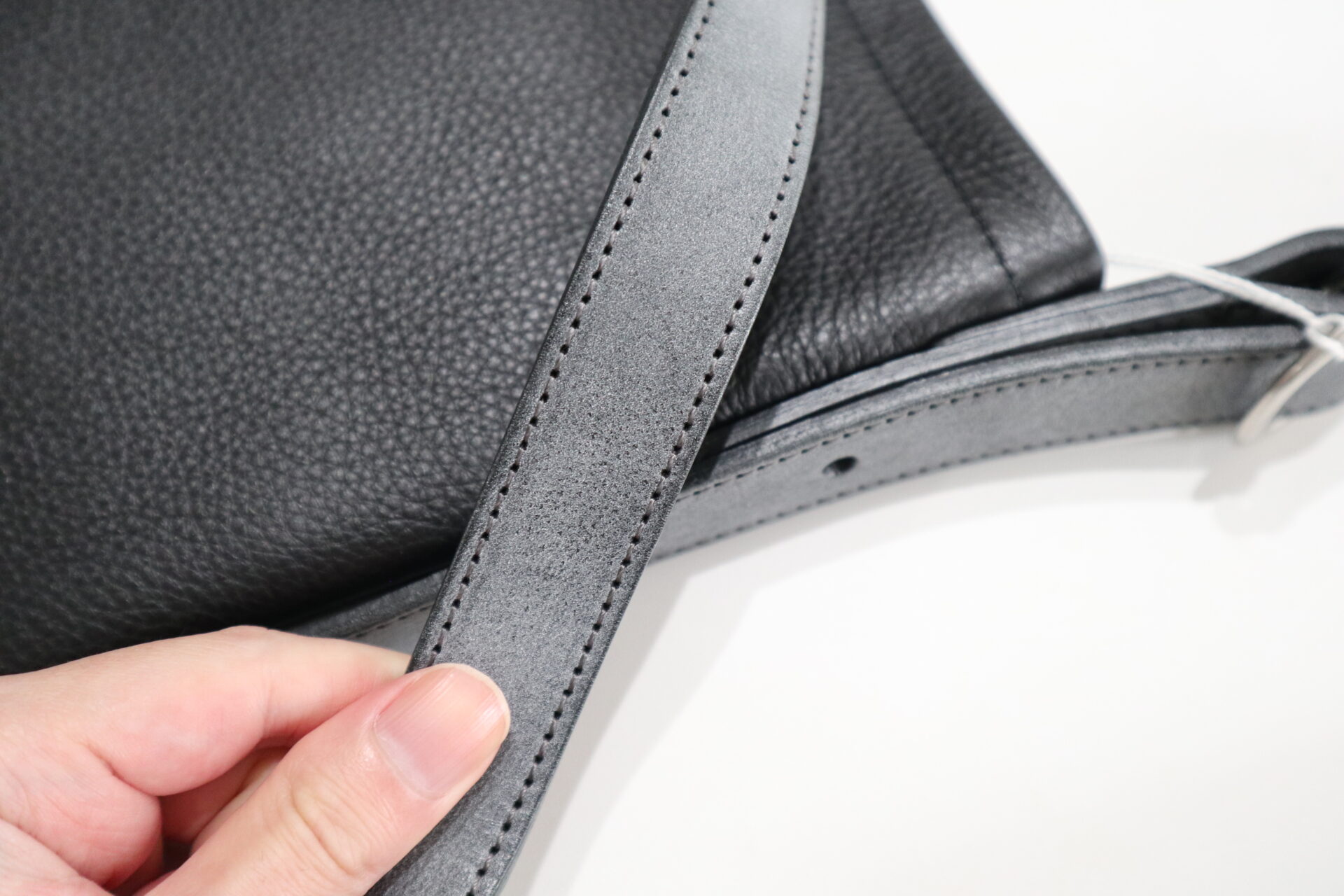 そしてびっくりしたのが、紐のレザーの質感。バッグ本体とは打って変わって固め分厚め。