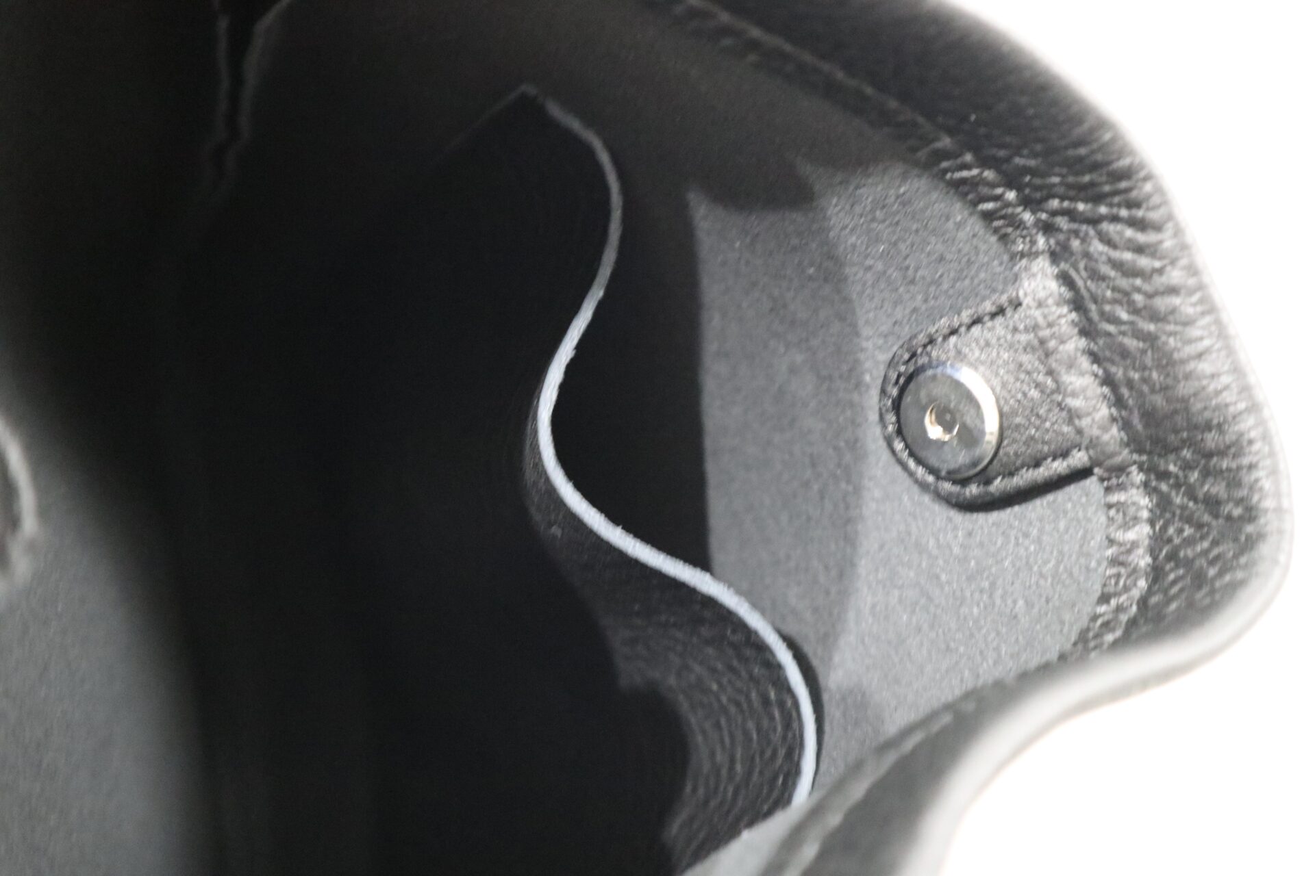 本体は柔らかいが厚みのあるシボ加工レザー。
