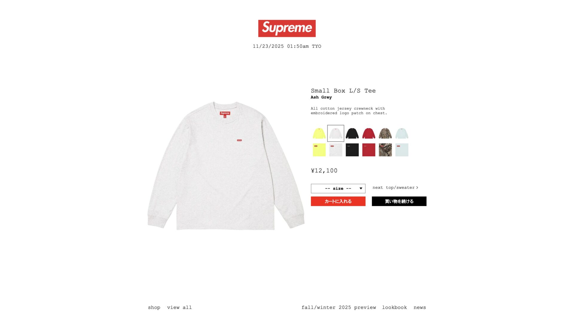 今回は、シュプリームのロンT「Small Box L/S Tee」を購入レビューした。