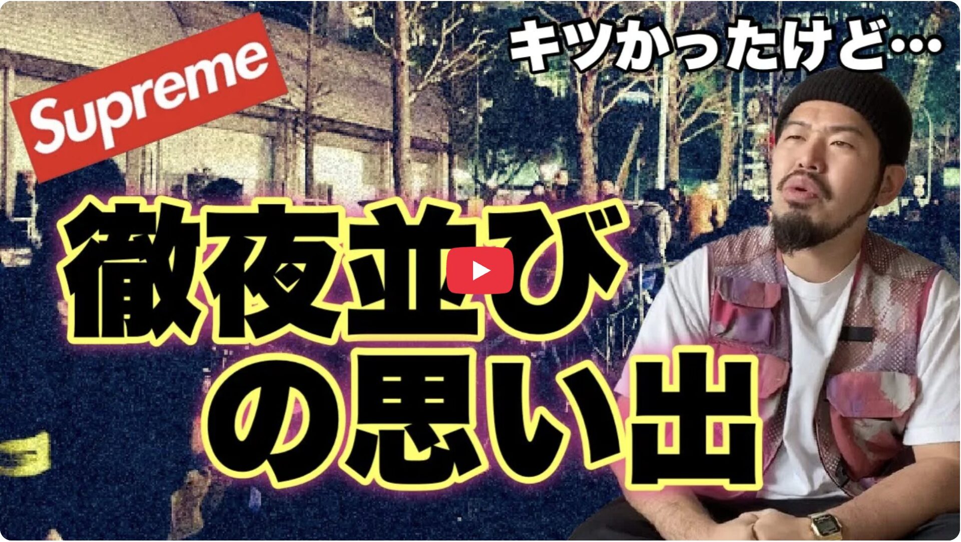 宮戸氏の名作動画の1つにシュプリームに徹夜で並んでいた思い出を話している動画があって、たまたまこの動画を再生してしまったことが今回の購入に至るきっかけだった。