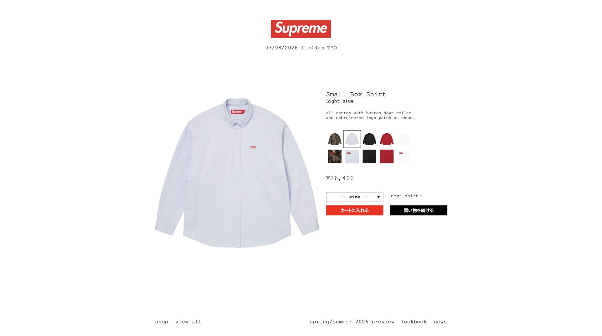 そんなわけで、今回はSupremeの「Small Box Shirt Light Blue」を購入したからレビューする。